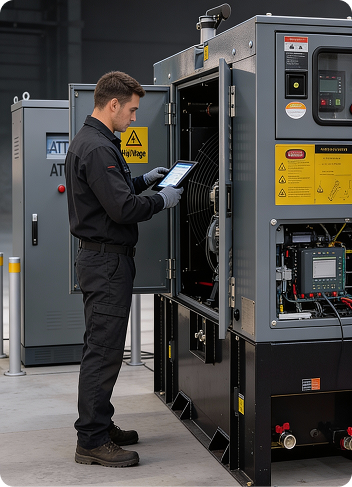The site had a tight footprint with active forklift lanes, leaving little room for a pad and service clearances. A strict boundary noise limit meant acoustic control and vibration isolation were essential. Frequent utility dips required safe neutral switching and fast, automatic transfer, but the changeover had to happen over a single weekend with zero disruption to dock operations. Fuel storage needed to be segregated with spill protection in a busy yard, while existing earthing and surge protection were inadequate for the new system. Finally, the client needed remote status and fuel alerts integrated into their facilities workflows.