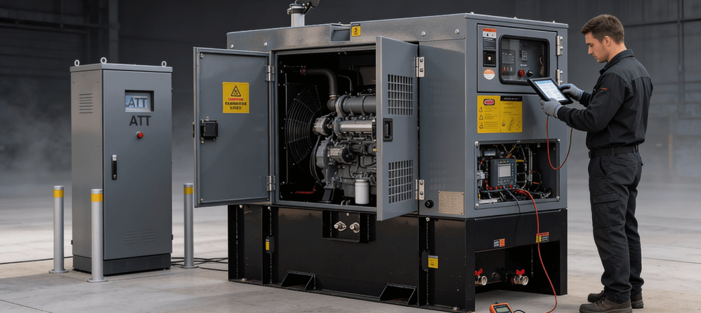 Our engineers completed a load study across conveyors, lighting, HVAC, and IT to size the system with starting currents and diversity in mind. We specified a 250 kVA diesel generator in an IP‑rated acoustic canopy paired with a 400A four‑pole ATS for safe neutral switching.